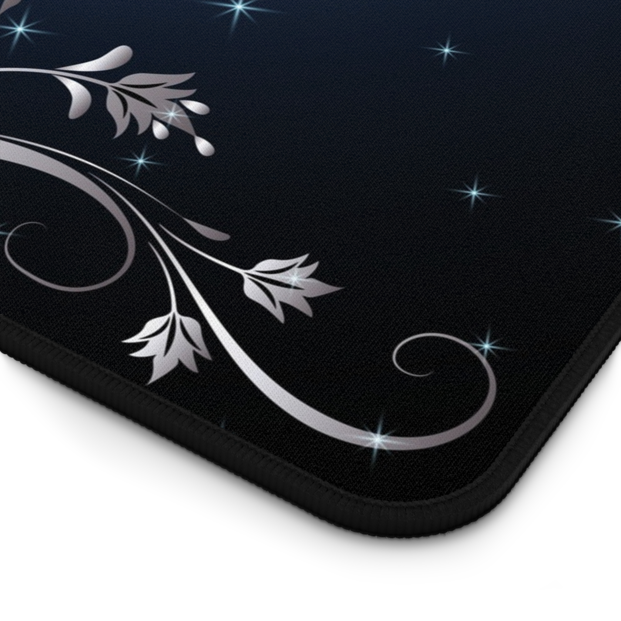This is a very beautiful butterfly, roses and flourishes desk mat design. Comes in 3 different sizes. It features glowing blue and pink butterflies with pink roses flourishes. Your custom monogram in white goes in the middle.